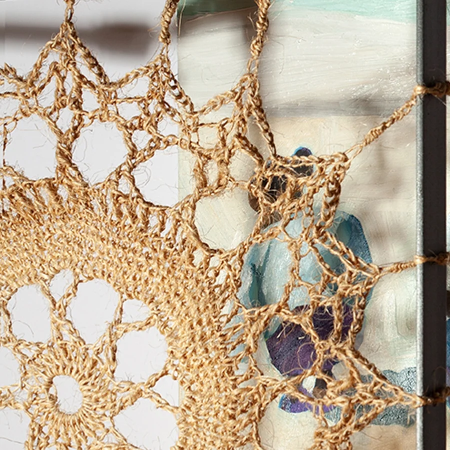 Against the wall oil on canvas, second panel iron frame with crochet sisal and cotton